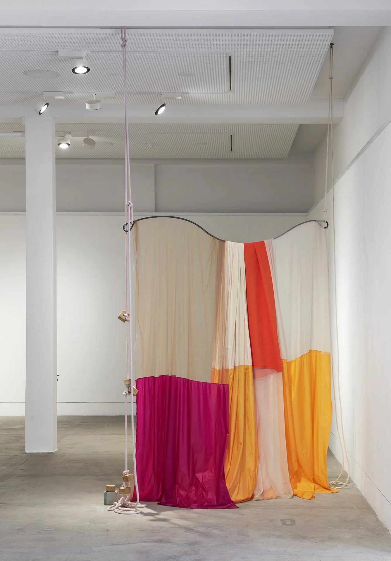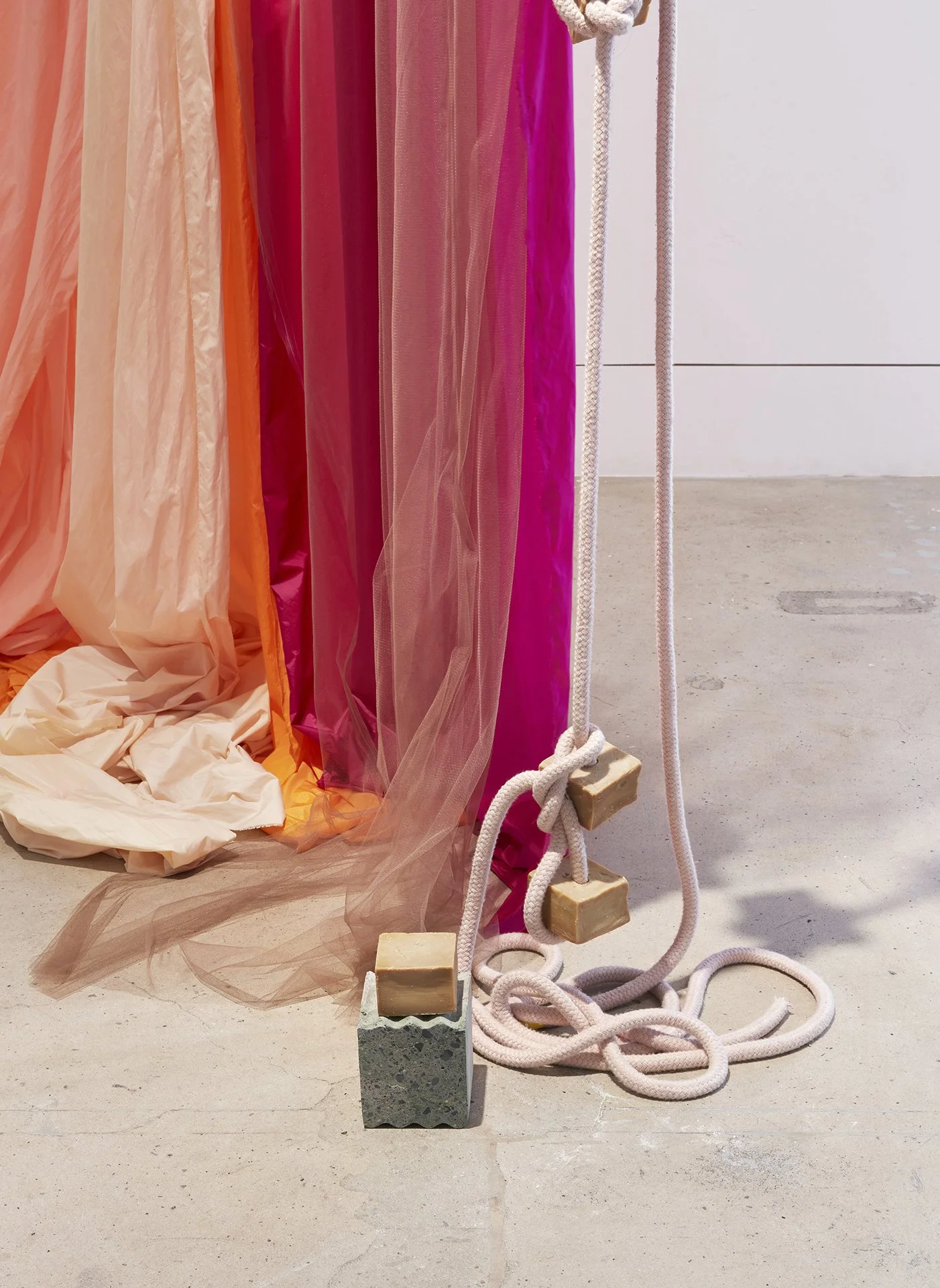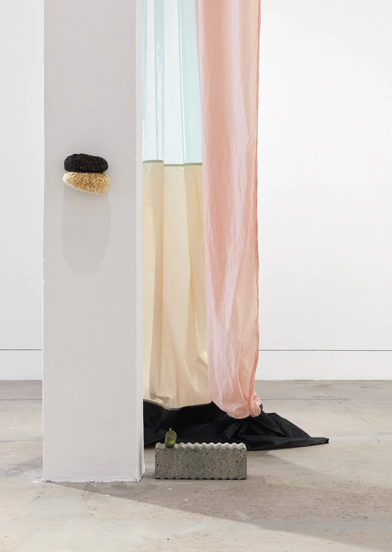 In a recent essay, “In Praise of the Indirect, the Unpredictable, the Immeasurable, the Slow, and the Subtle”, Rebecca Solnit reflects on uncertainty. The American writer, historian and activist urges that we accept uncertainty, as it allows for the “spaciousness of the unknown, the not yet created”. In a voice memo sent close to the exhibition opening, Brincat explains that she will not fully resolve Curtain Call until she installs the work. She will continue to cut and sew in the space. This open process is carried into the openness of the work. As Brincat shares, she gets “pleasure in others telling me what the work means”. Her practice does not benefit from categorisation. Acknowledging the “leakiness and limits” of categories, Solnit warns against “the false certainty that pretends to know as a means of ignoring the fact that we don’t”. In resisting direct explanation, Curtain Call leaves room for the audience. It acknowledges and embraces the oddness of living.